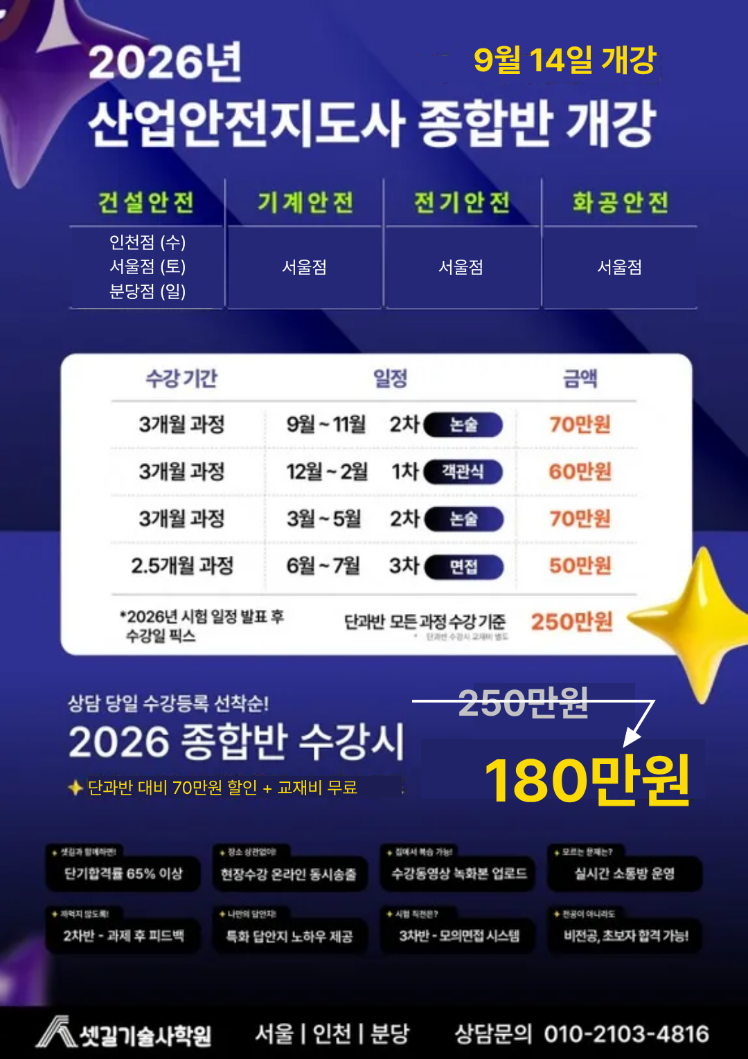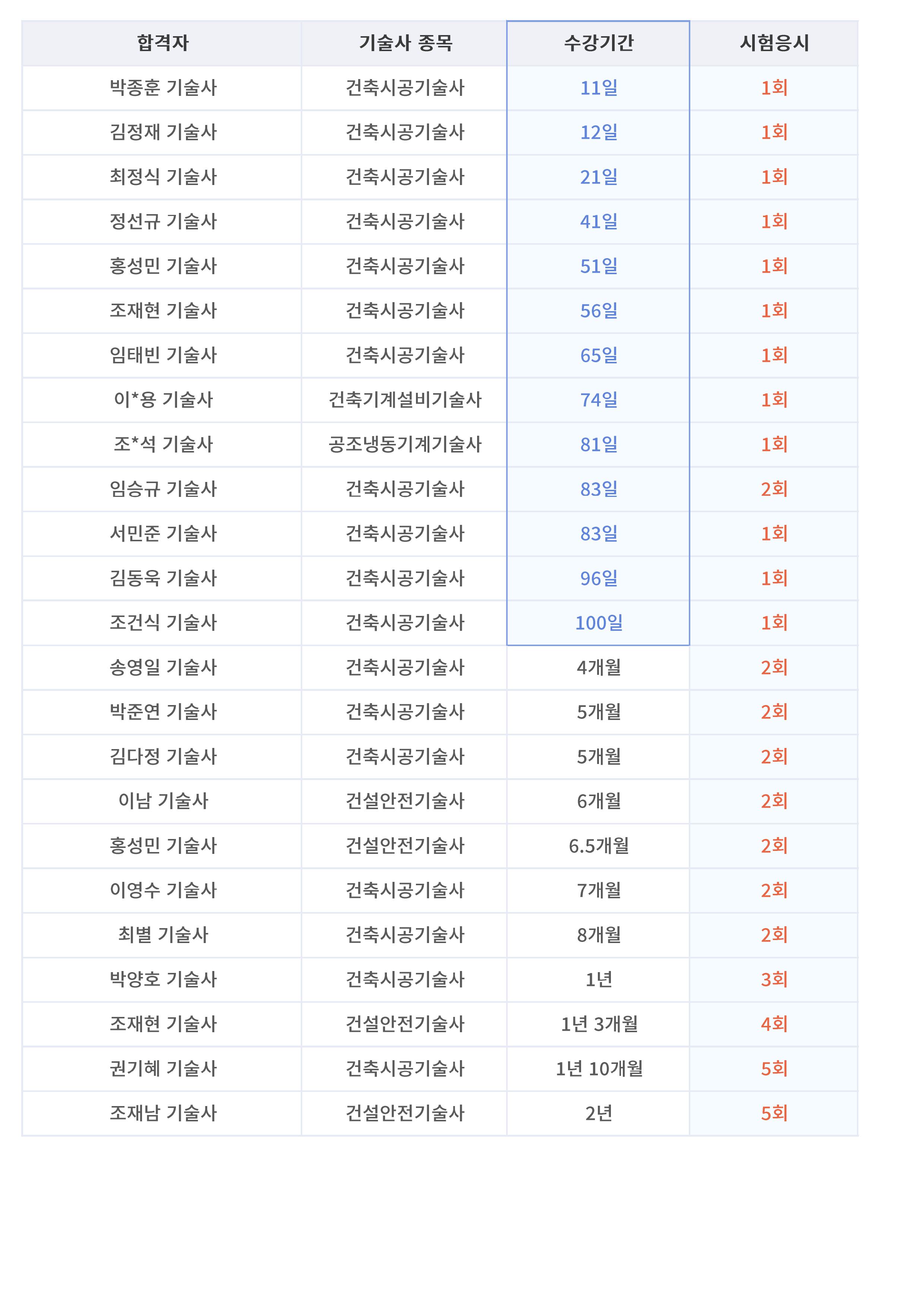 | 강선영 교수 | 건설안전기술사 | 13:00 - 17:00 (4시간) | 서울점, 분당점, 인천점 | |
