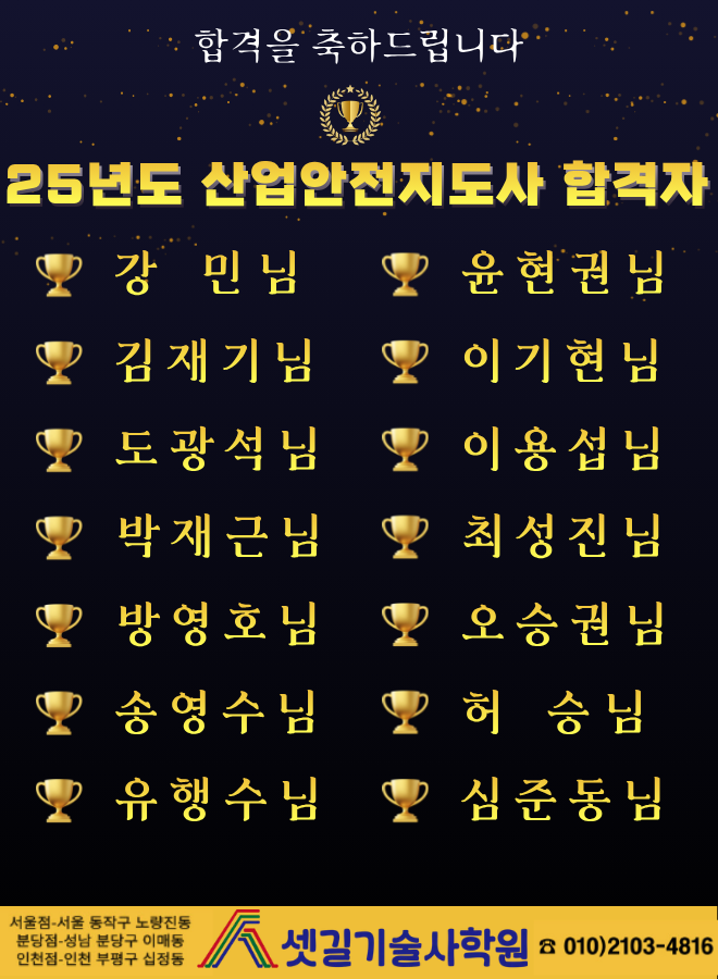 셋길기술사학원 덕분에 더욱 빛날 수 있었습니다.